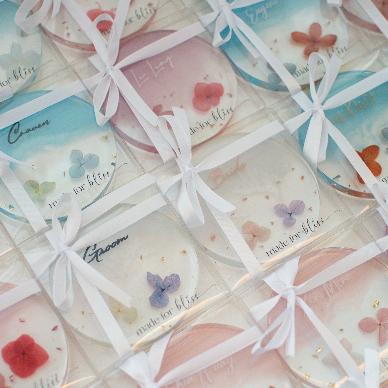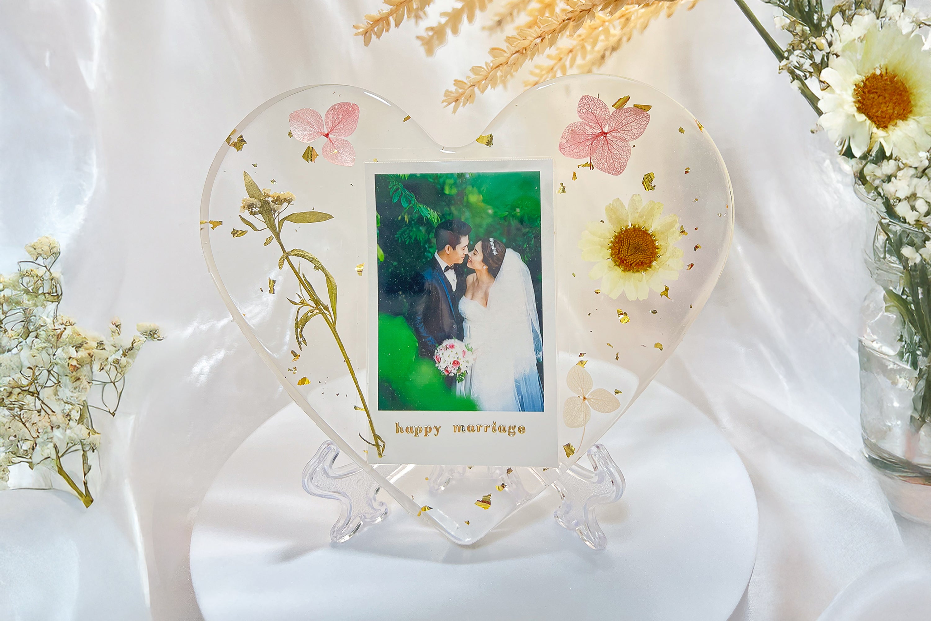 Try your hand at it. With more than 30 features to personalise the colour, floral designs, themes, and text of our hand-made resin gifts, we promise that you would be spoilt for choice.
